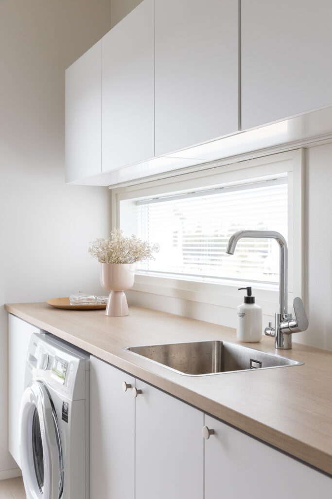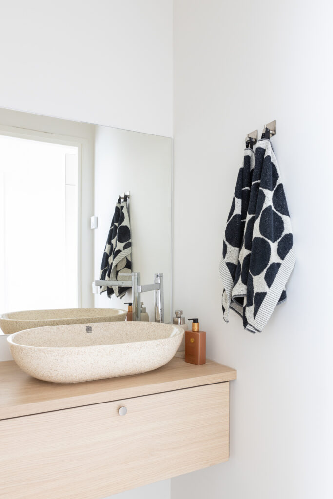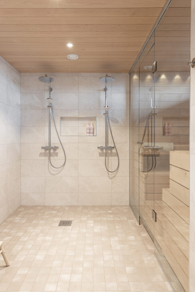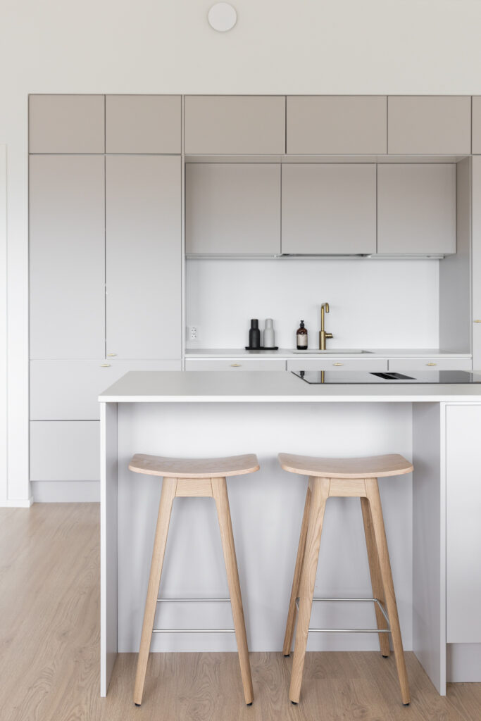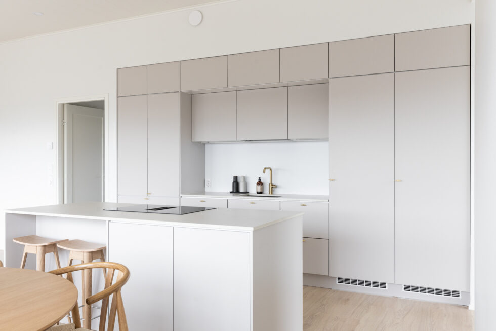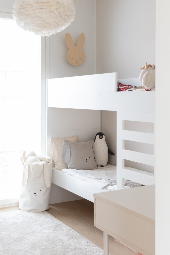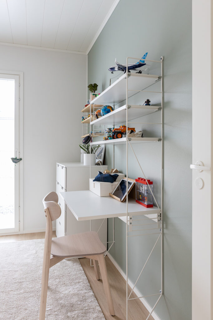 Tähän ihastuttavaan kotiin on sisällytetty kaikki tärkeät arjen ominaisuudet ja jopa neljä makuuhuonetta. Keittiössä on saareke, rauhallinen sävymaailma ja paljon valoisaa tilaa suurien ikkunoiden ansiosta. Keittiö-olohuoneesta on myös suora yhteys kauniiden pariovien kautta koko talon levyiselle, katetulle terassille. Tässä kodissa harkittu sävymaailma säilyy läpi talon aina oleskelutiloista lastenhuoneisiin.